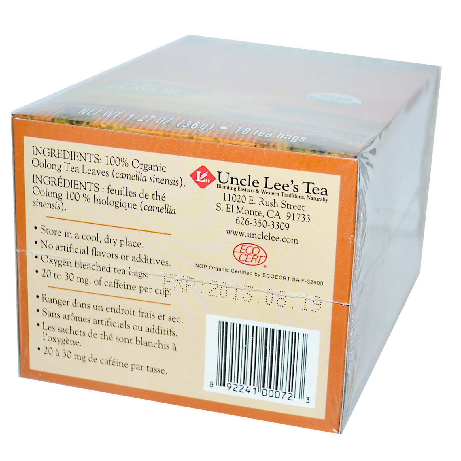 Only Uncle Lee’s packs extra large tea bags with whole leaves. This unique method means a higher quality tea with more flavor and health benefits for you. Our Whole Leaf Organic Oolong Tea is a partially oxidized green tea that has qualities of both green and black tea. An oxidizing process called withering allows the tea to soften, releasing enzymes that darken the tea leaves when exposed to air. Our Whole Leaf Organic Oolong Tea is loaded with antioxidants and soothes the senses with a rich taste and delightful aroma. Taste the difference of Uncle Lee’s Organic Whole Leaf Tea.