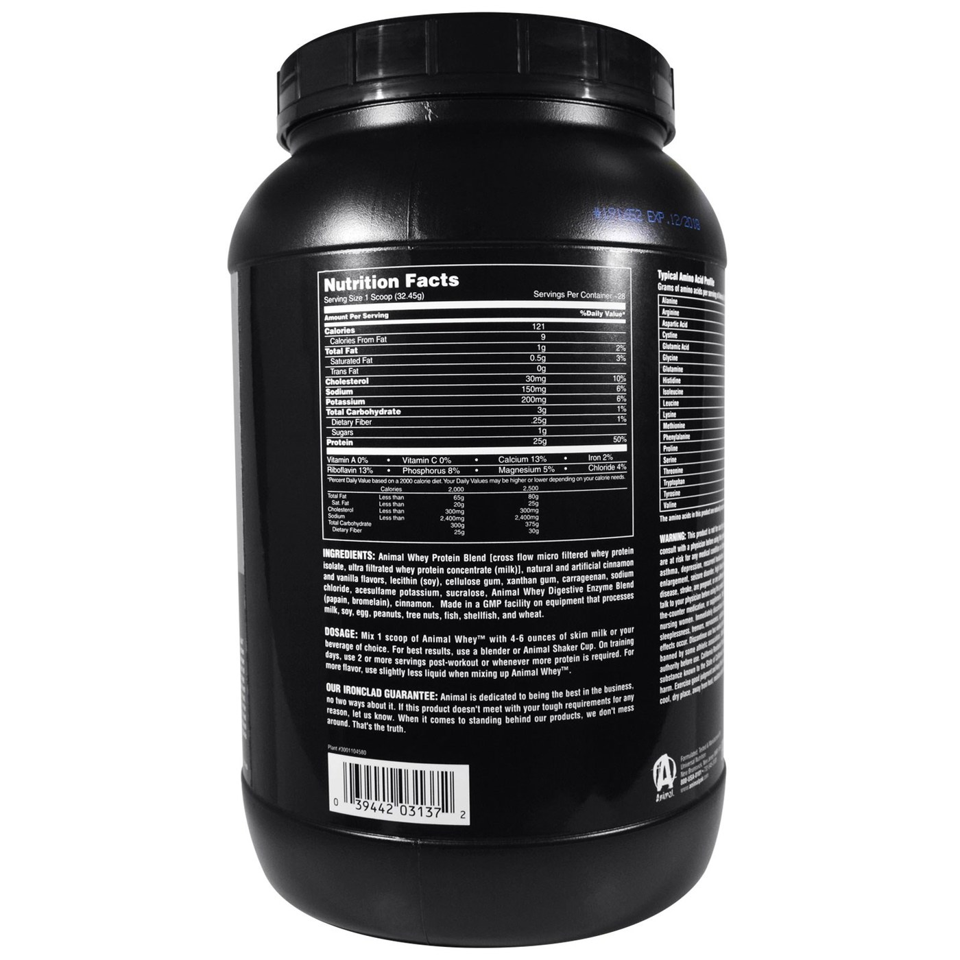 Recomendações de uso: Mix 1 scoop of Animal Whey with 4-6 ounces of skim leite ou your beverage of choice. Fou best results, use a blender ou Animal Shaker Cup. On training days, use 2 ou moue servings post-woukout ou whenever moue protein is required. Fou moue flavou, use slightly less liquid when mixing up Animal Whey.