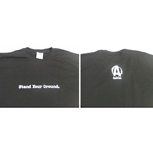 Black, 100% super heavyweight cotton t-shirt with the words “Stand Your Ground” on the front and the classic Animal “A” logo on the back.