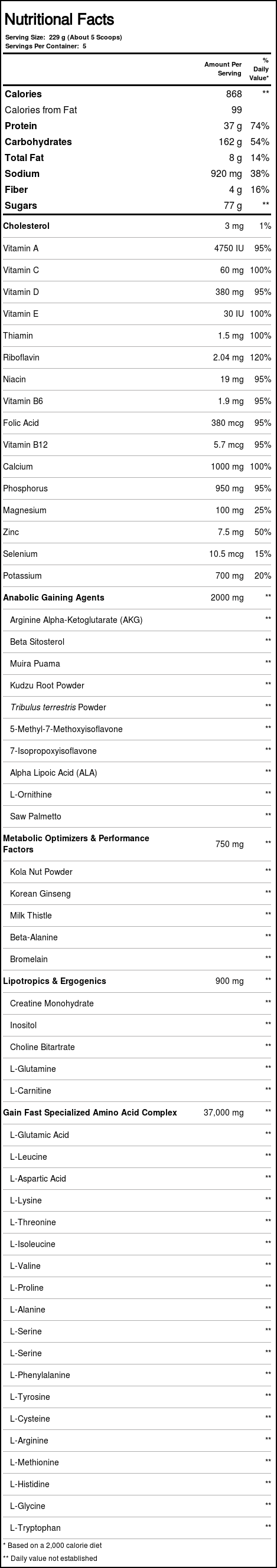 niversal Nutrition designed Gain Fast 3100 with fast and slow absorption proteins.