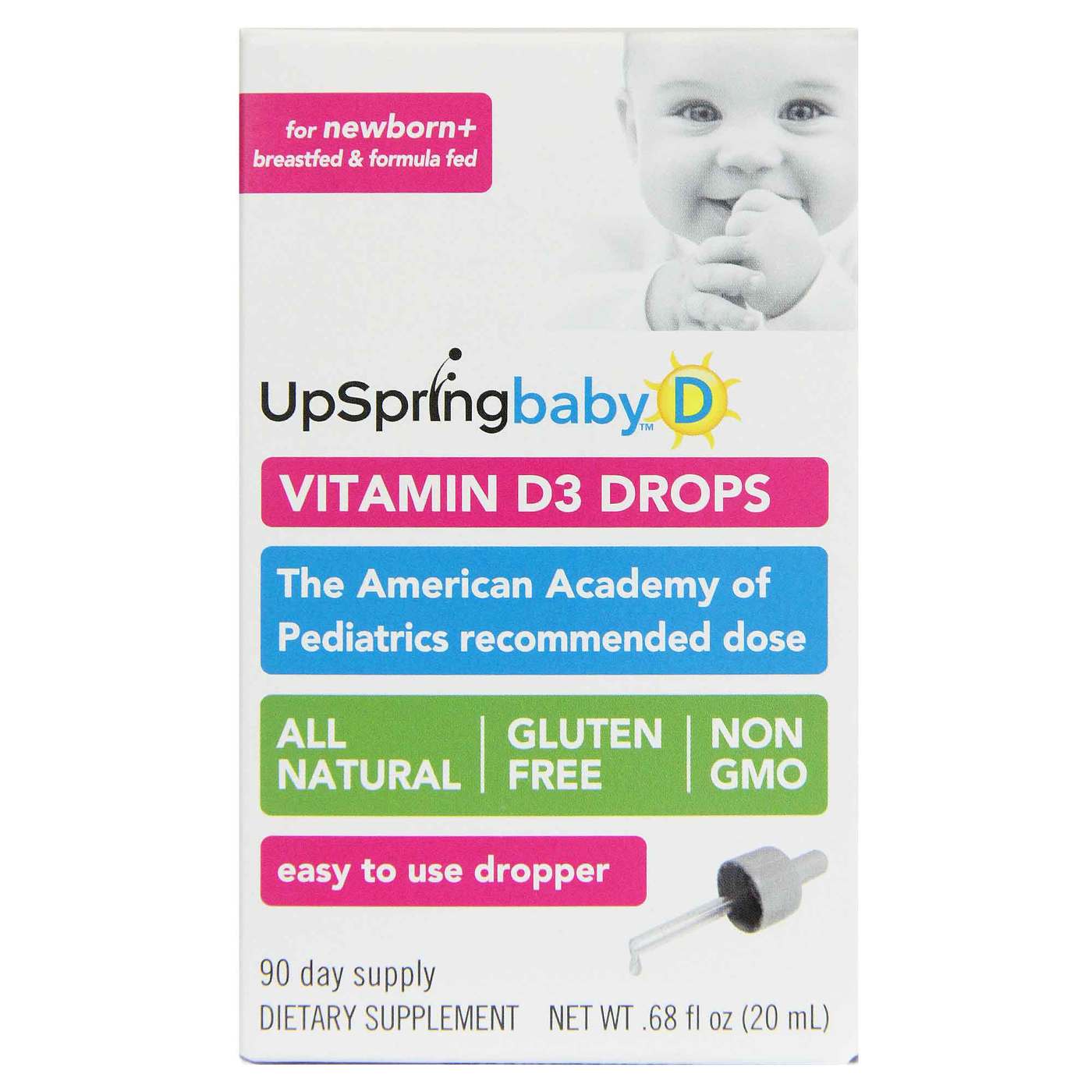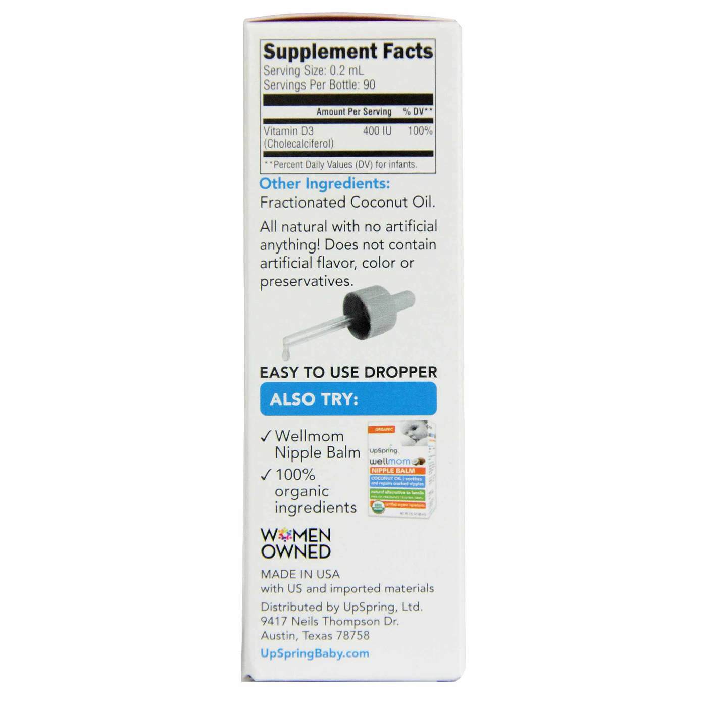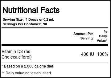 br> WellBaby D All-Natural Vitamin D Drops For Infants from UpSpring features 400 IU of Vitamin D3 in each serving,