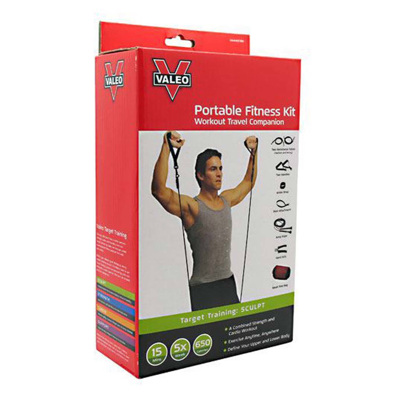 your workout with you with the Valeo Portable Fitness Kit that includes everything you need to feel the burn away from the gym or your home routine.