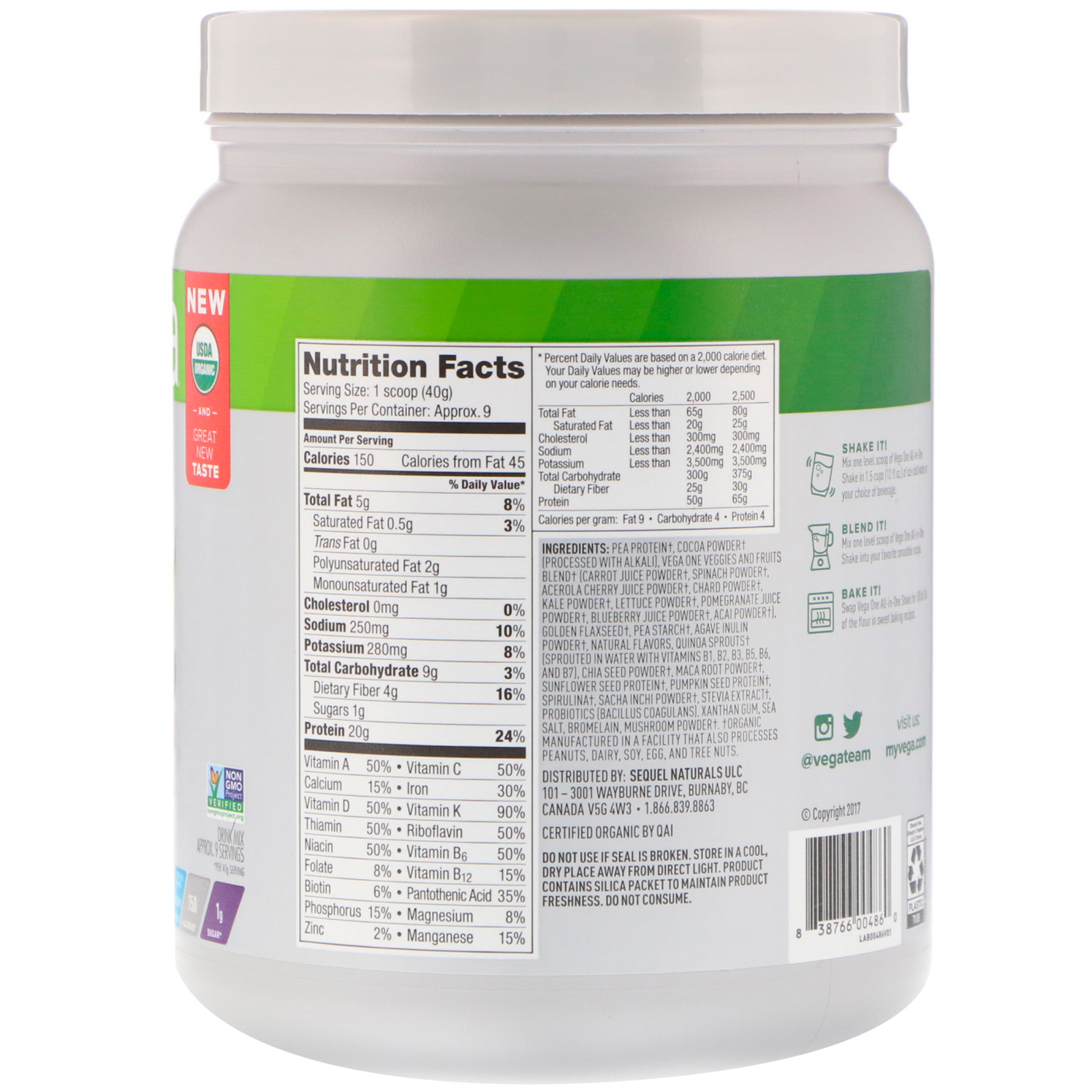 We believe in putting good in to get good out. That’s why we’ve packed Vega One All-in-One Shake with far more than just protein. Full of real, organic, plant-based ingredients, Vega One harnesses the power of plants to help you supercharge your day, deliciously.