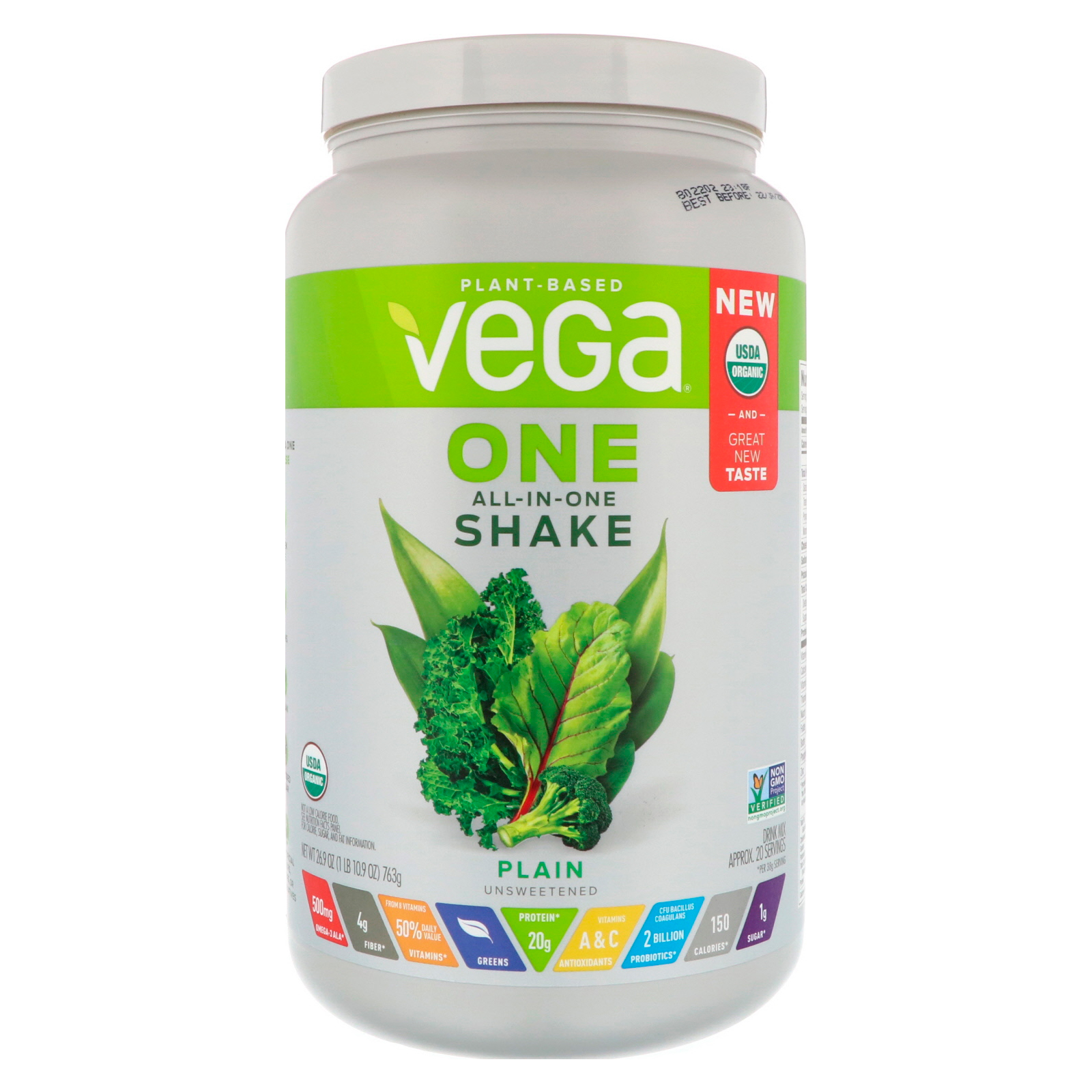 - Vega, One, Shake Tudo-Em-Um, Baga, 24,3 oz (688 g)
