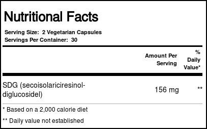 The amount of Flax Lignan SDG per capsule is equal to the amount contained in 1 tablespoon of ground flaxseeds [approximately 7 grams).