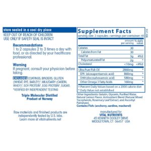 - Vital Nutrients Ultra Pure Fish Oil 700 Enteric - 90 cápsulas revestidas entericamente