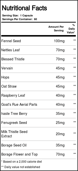 Vitanica formulated the Lactation Blend with herbs for a women remedy.