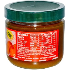 Make the upgrade from high calorie, sugar-packed jam and jelly found at the local supermarket to the healthy and delicious flavor of Apricot Fruit Spread. Store-bought jelly and jam can easily add 200 calories with just two tablespoons! Apricot Fruit Spread is made with concentrated fruit extracts and completely free of calories, gluten, fat, carbs and sugar. Apricot Fruit Spread tastes great on toast, muffins, bagels or when paired with cottage cheese and yogurt.