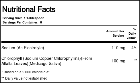 Advertências: Chlorophyll contains a natural green pigment that could stain your clothing. Handle with care. Keep out of reach of children.