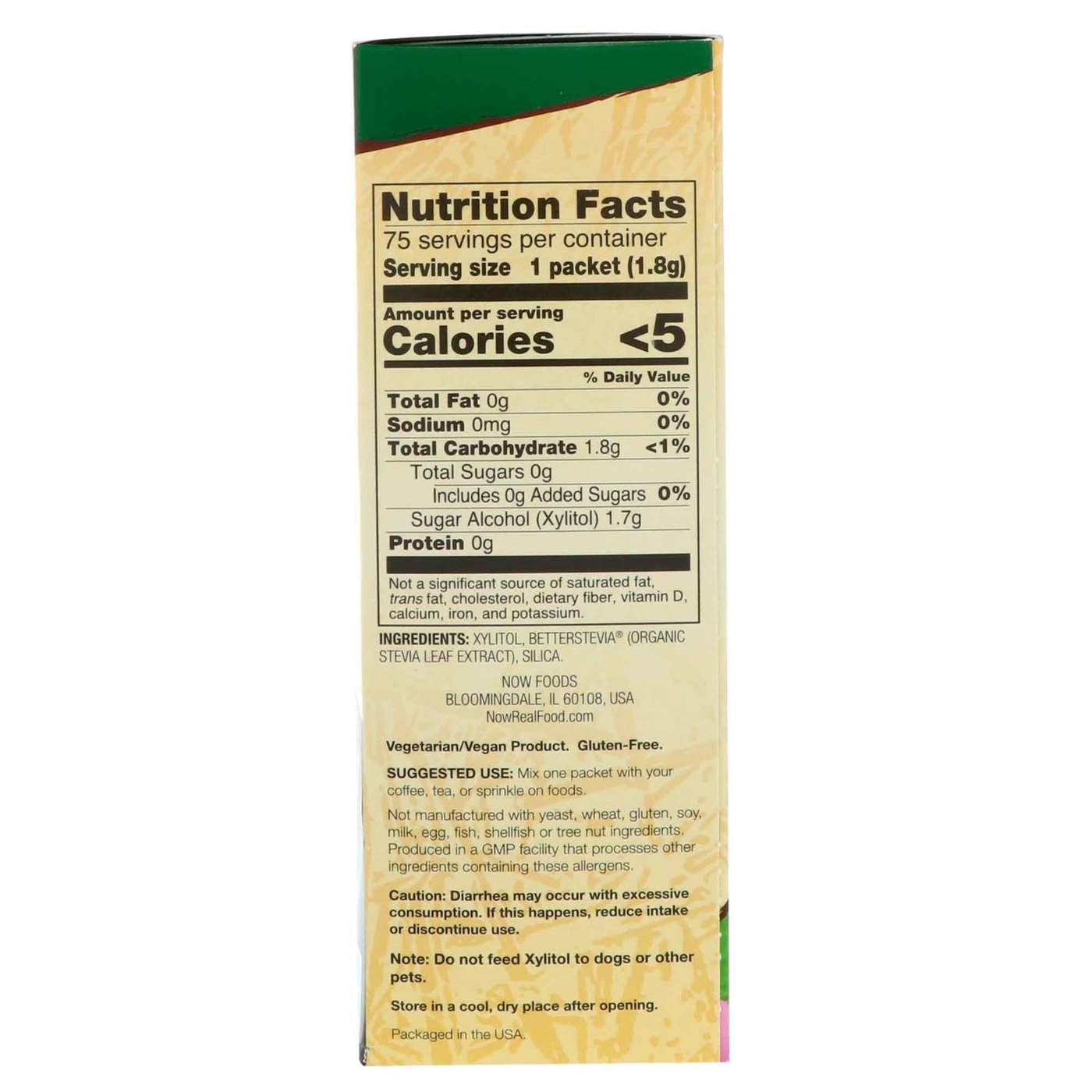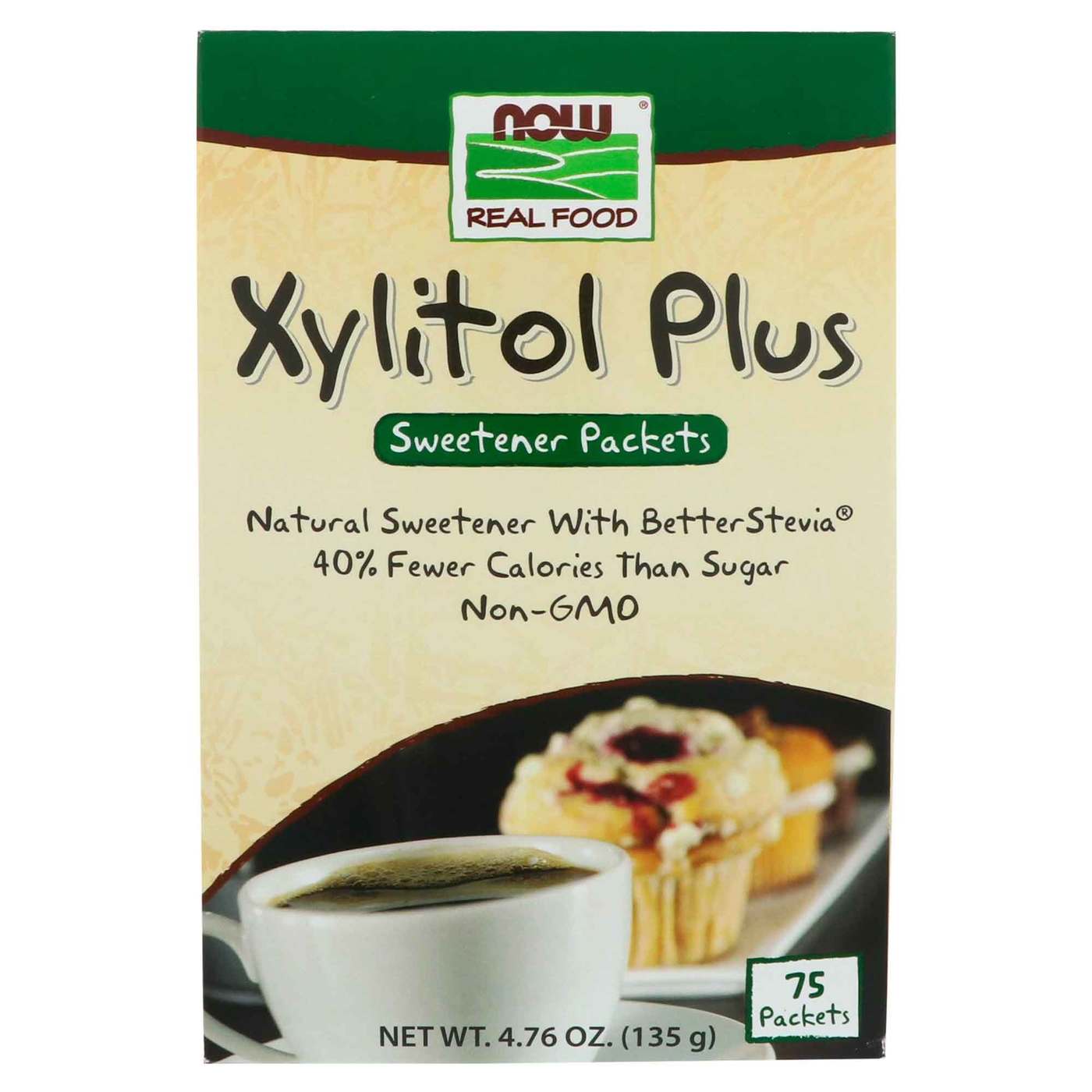 Xylitol mais com Extrato de Stevia Now Foods 75 Pacotes