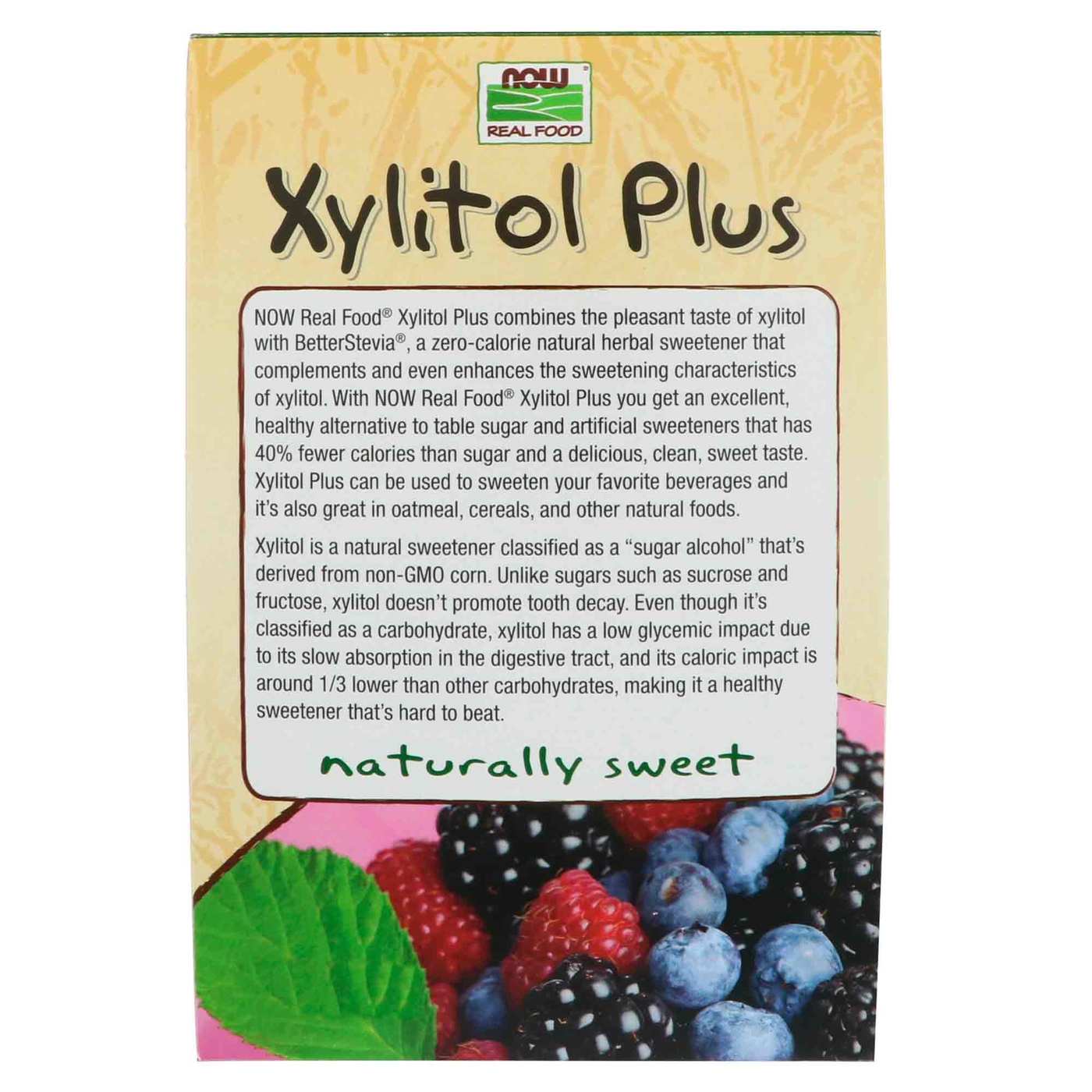O xilitol é um álcool de açúcar natural encontrado em alimentos e casca de árvore. Promovido por nutricionistas e dentistas, xilitol tem sido usado por décadas como um substituto saudável para o açúcar. É conhecido pela sua falta de efeito sobre a glicose no sangue e a capacidade de bloquear a formação de placa bacteriana nos dentes. Xilitol Plus da Now traz os benefícios do xilitol com uma mistura adicional de stevia. Juntos, esses adoçantes naturais de baixo índice glicêmico pode ajudá-lo a adicionar um sabor delicioso a seus alimentos e bebidas favoritas ao fornecer 40% menos calorias do que o açúcar de mesa comercial.