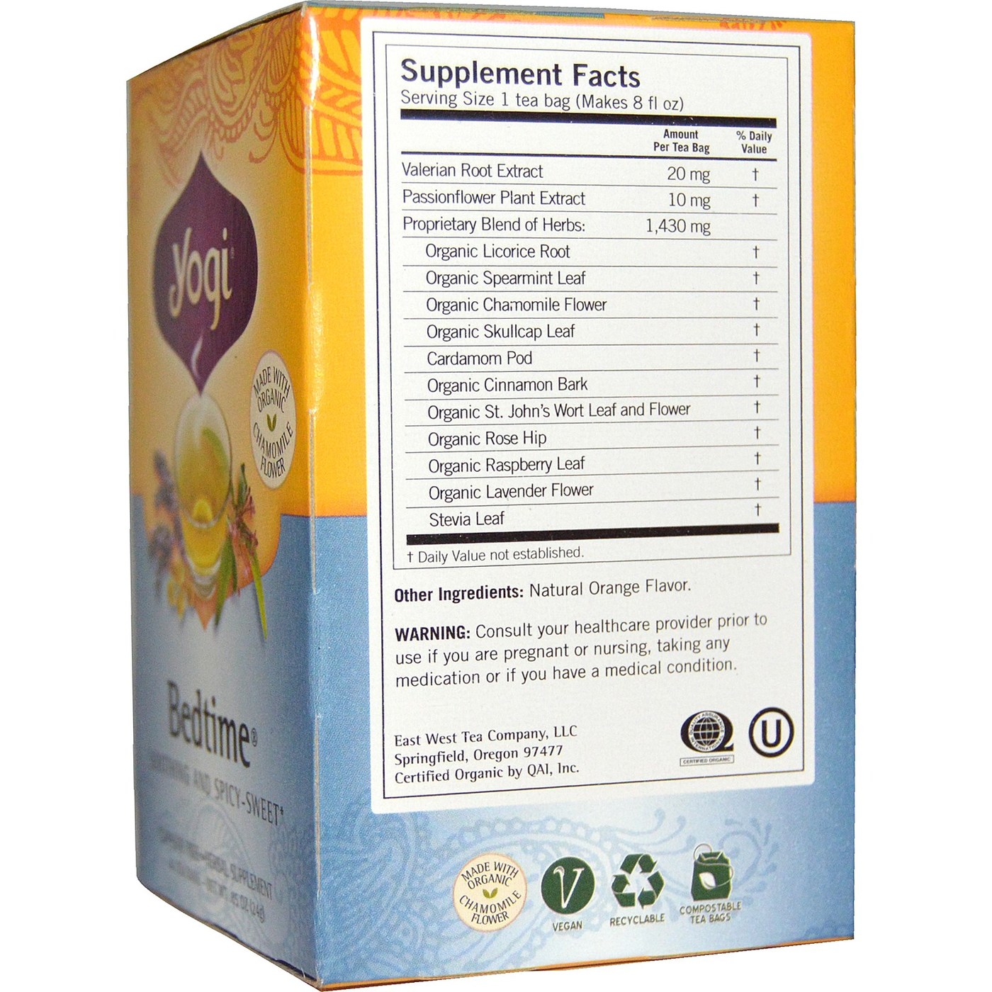 Yogi Tea Organic Teas Chá Orgânico Bedtime 16 Sacos