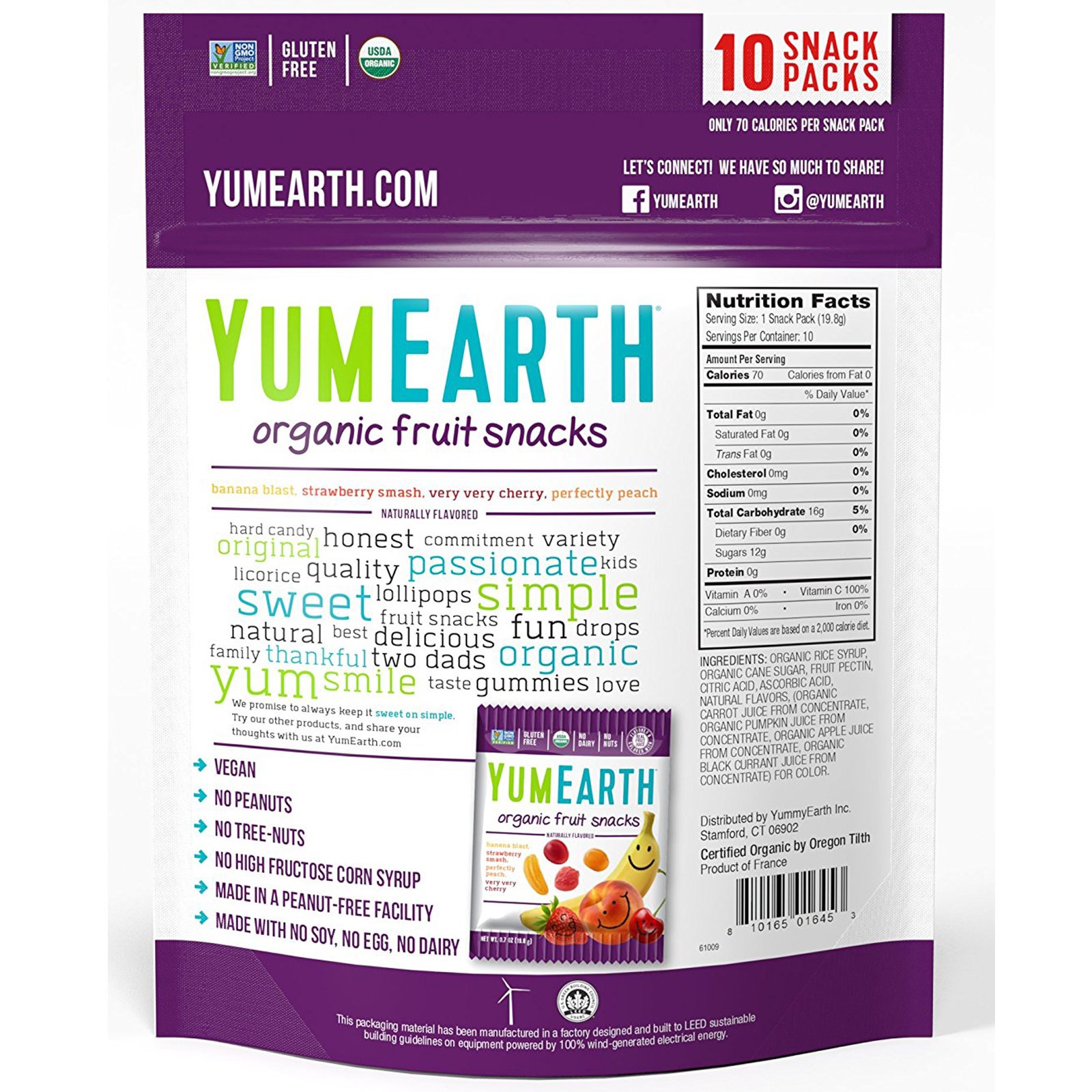 Sem amendoim, sem nozes, sem xarope de milho rico em frutose. Feito sem soja, sem ovo, sem lácteos.