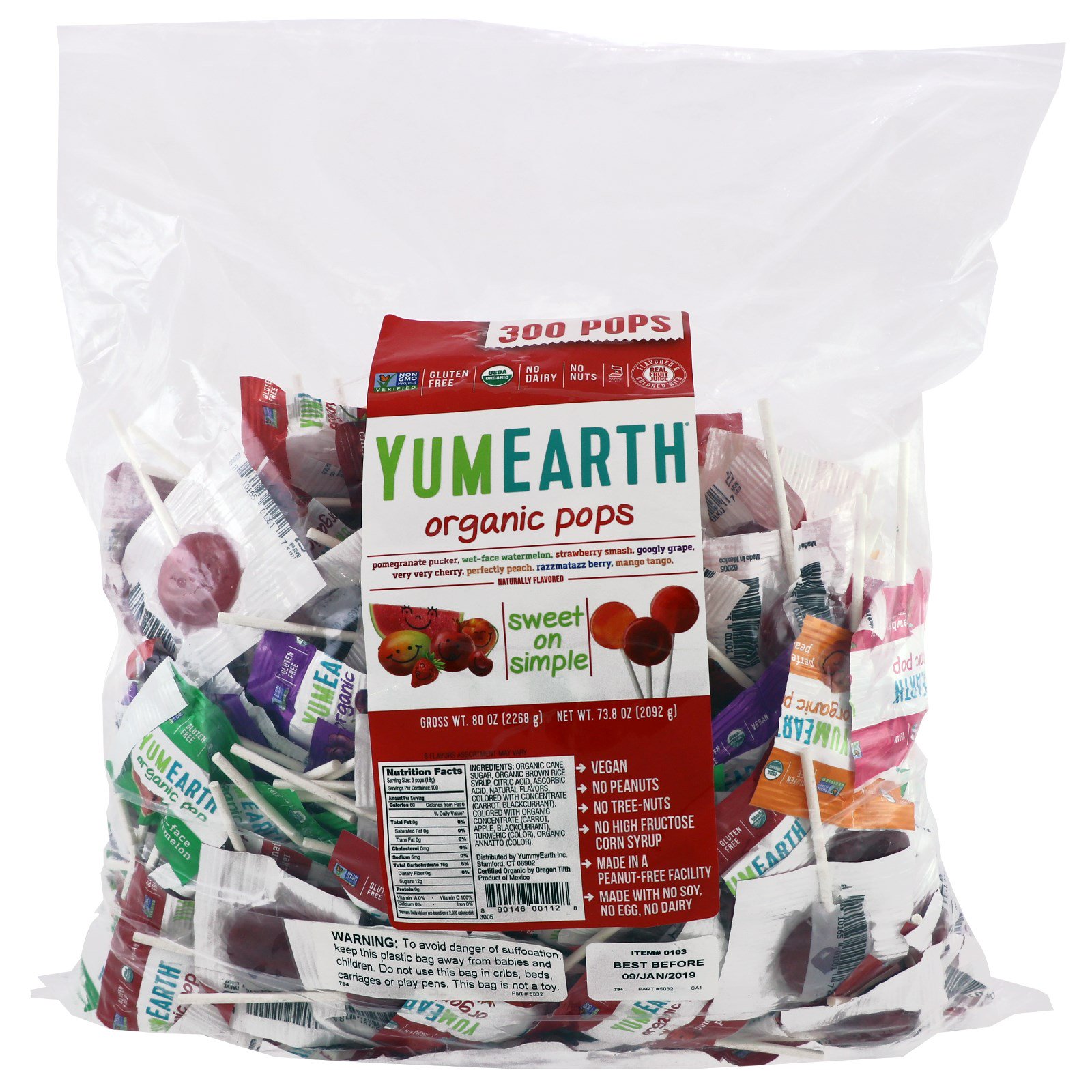 *Os pirulitos orgânicos da YumEarth são feitos com sucos de frutas, como listado no painel de ingredientes. Elas não substituem as frutas na dieta. Por favor, coma muitas frutas e vegetais!