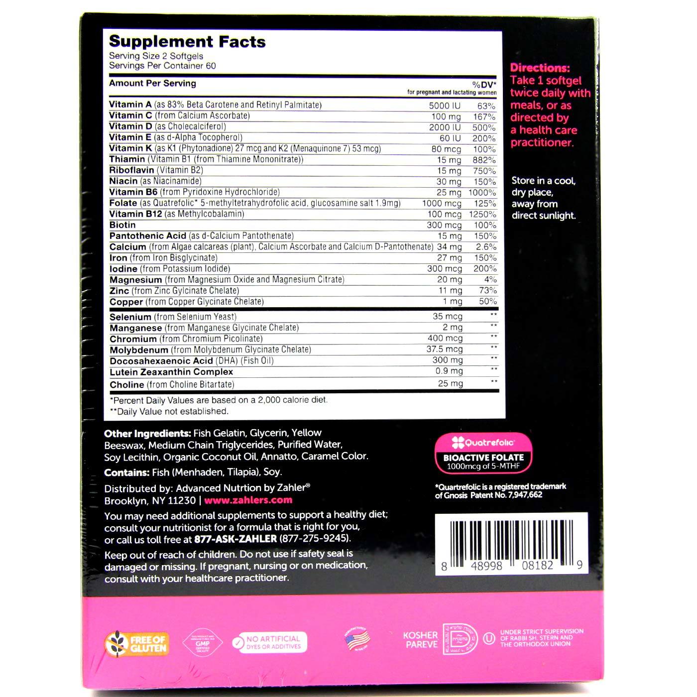 Zahlers Prenatal +DHA 300 is made with bioactive ingredients.