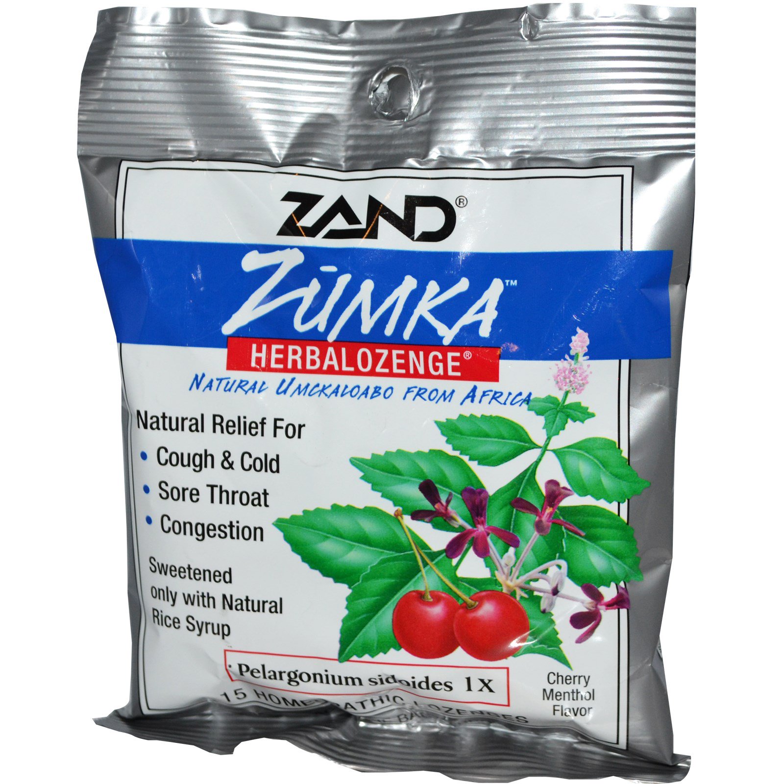 As pastilhas herbais contra a tosse Zand Zumka contêm um corante homeopaticamente preparado de Pelargonium sidoides, também conhecido como Umckaloabo. Tradicionalmente usado pelo povo Zulu e outras tribos africanas para ajudar na saúde das vias respiratórias superiores e aliviar a garganta. Esse corante botânico único com mentol e o blend tradicional de extratos botânicos aliviantes da Zand oferece ação rápida no alívio respiratório, de dores de garganta e tosse.