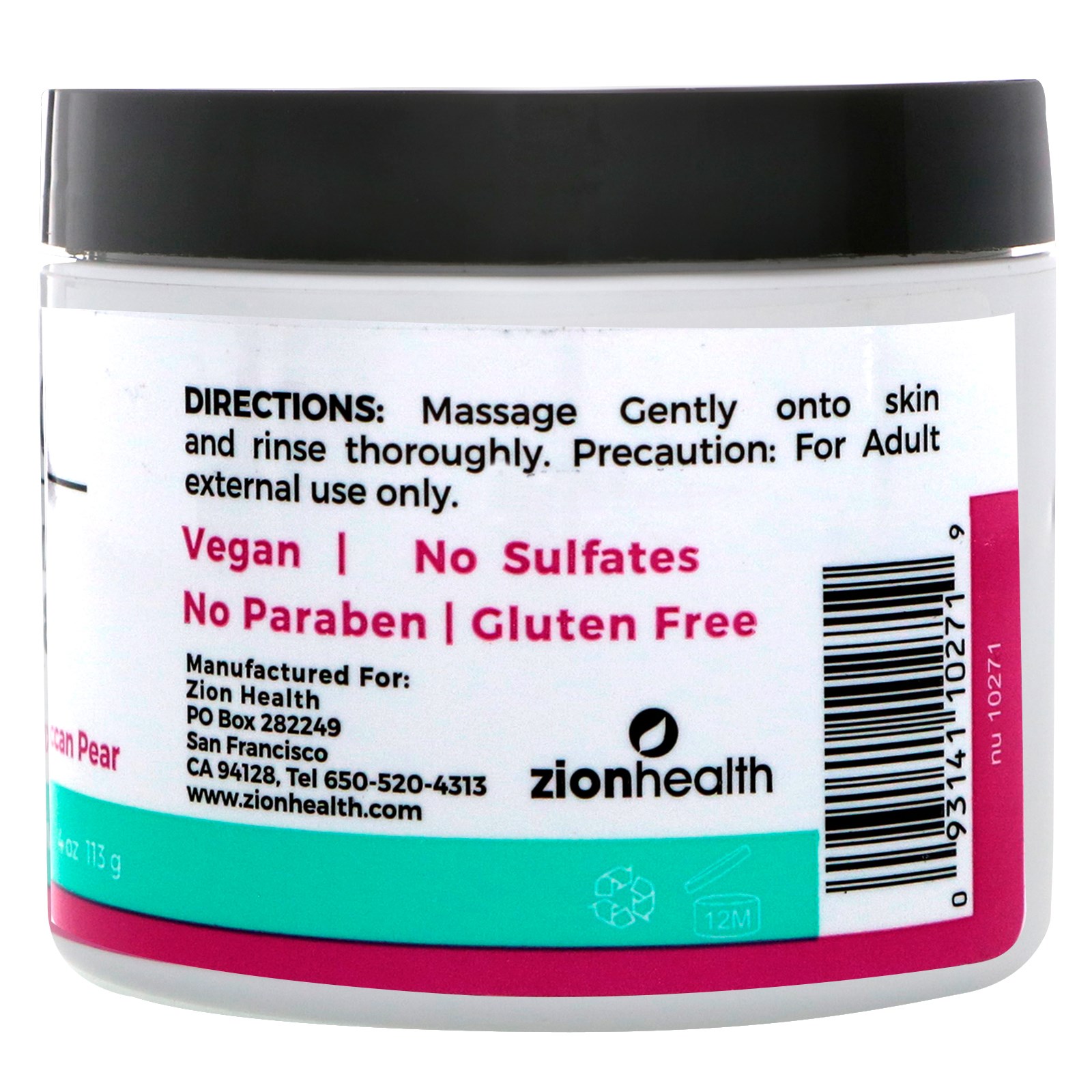 Zion Health, Adama, Argila antiga, esfregaço corporal, pera marroquina, 4 onças (113 g)