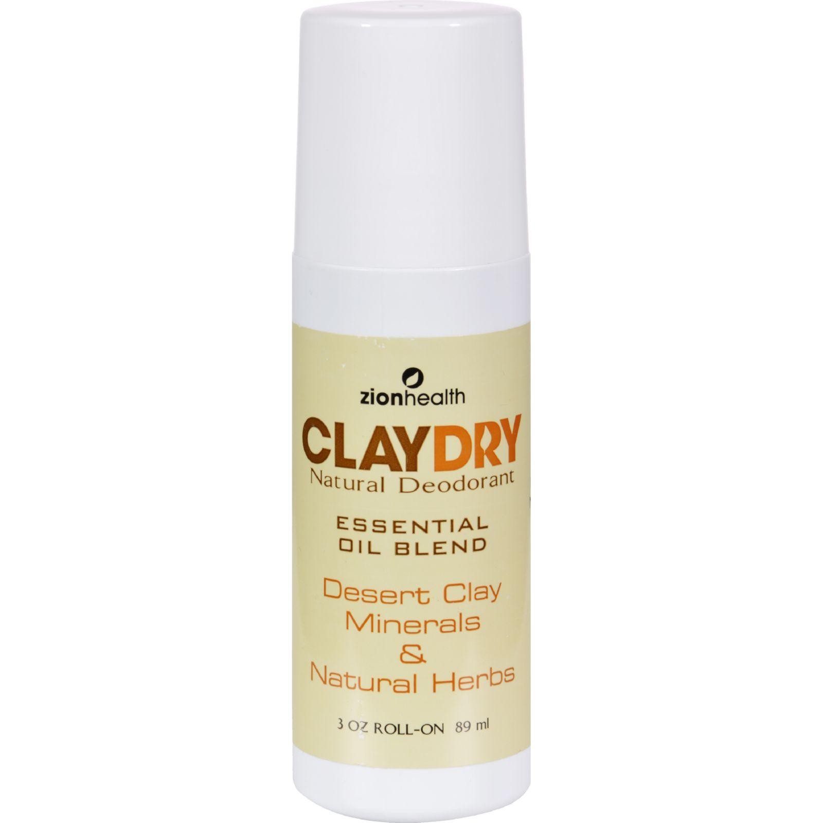 Zion Health Clay Dry Natural Deodorant Description: Essential Oil Blend Desert Clay Minerals and Natural Herbs Roll-On Our unique formula of Essential Oils and Desert Clay Minerals work effectively to neutralize odor and Naturally absorb wetness. Contains no antiperspirant properties. Free Of Artificial ingredients, animal testing. Disclaimer These statements have not been evaluated by the FDA. These products are not intended to diagnose, treat, cure, or prevent any disease.