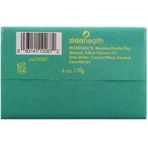 Zion Health, Sabão de argila antigo, sabão de terra energizante, carité e coco, 6 onças (170 g)