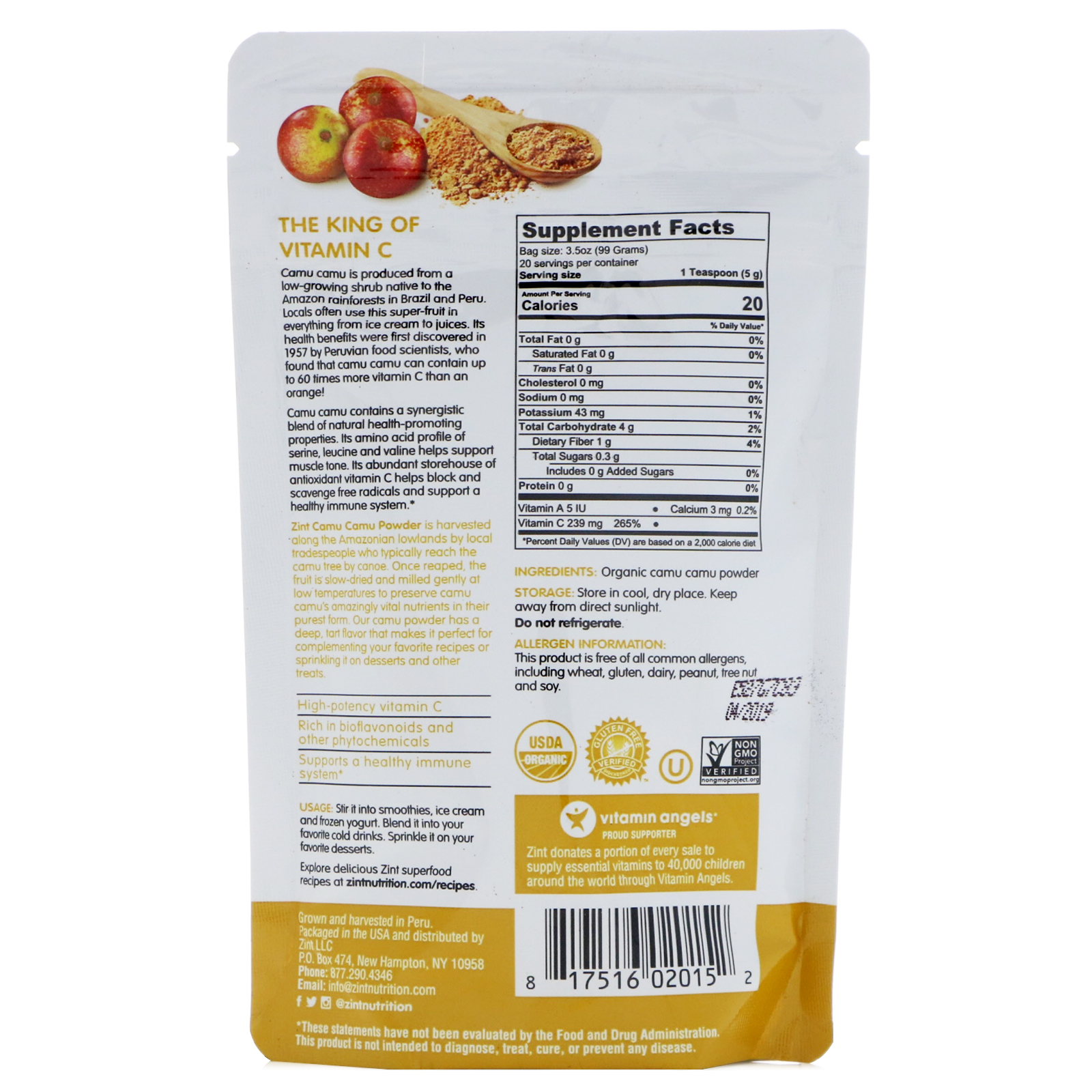 Z!NT, Camu Camu Pó Orgânico, 3,5 oz (99 g)