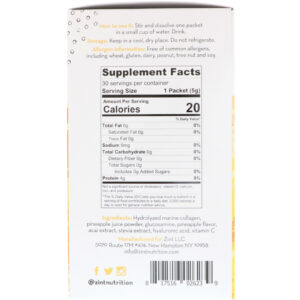 Hydrolyzed marine collagen, pineapple juice powder, glucosamine, pineapple flavor, acai extract, stevia extract, hyaluronic acid, vitamin C.